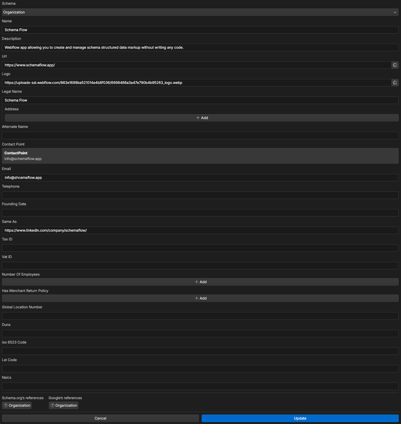 How to install Organization schema to Webflow (with examples)?